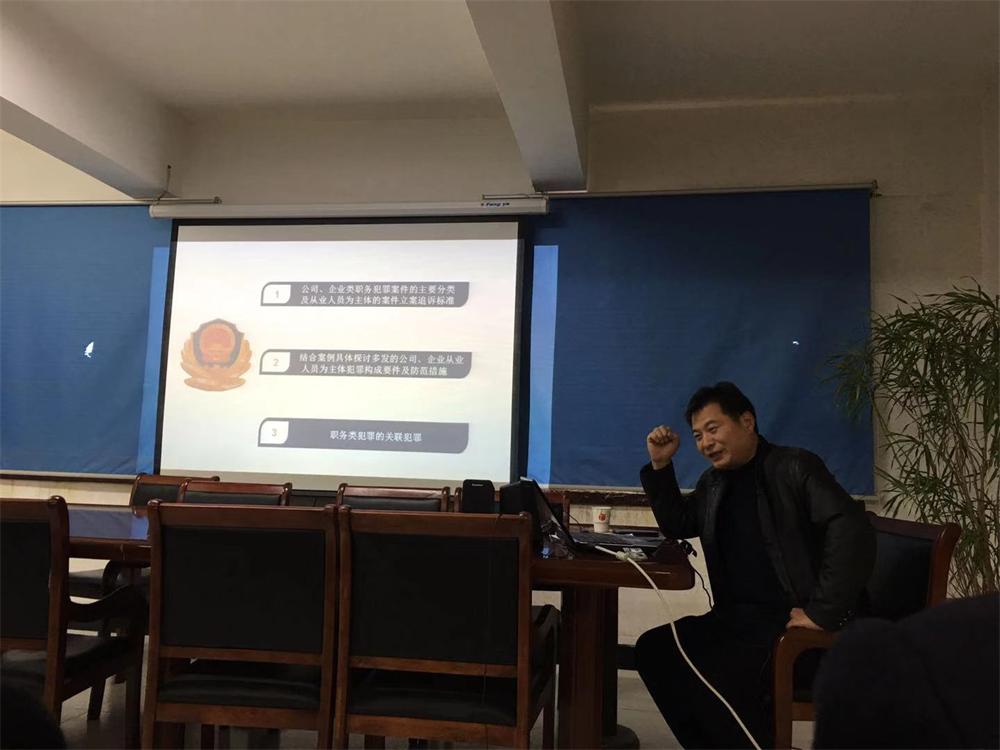 在本次普法講堂中,李超大隊(duì)長(zhǎng)主要對(duì):1、公司、企業(yè)類職務(wù)犯罪案件的主要分類及從業(yè)人員為主題的案件立案追訴標(biāo)準(zhǔn);2、結(jié)合周邊案例具體探討多發(fā)的公司、企業(yè)從業(yè)人員為主體犯罪構(gòu)成要件及告訴大家如何筑牢防范措施;3、職務(wù)類犯罪的關(guān)聯(lián)犯罪等幾方面做出講解。并提到,大家如何才能在知法、懂法、守法的基礎(chǔ)上,加強(qiáng)自身業(yè)務(wù),忠誠(chéng)履職、廉潔履職,積極防范自身風(fēng)險(xiǎn)。