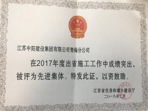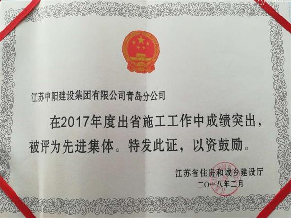 青島分公司、青海分公司被江蘇省住房和城鄉(xiāng)建設(shè)廳評(píng)為2017年度出省建筑施工先進(jìn)集體。青島分公司經(jīng)理?xiàng)顤|明同志、青海分公司劉前昌同志被江蘇省住房和城鄉(xiāng)建設(shè)廳評(píng)為2017年度出省施工先進(jìn)個(gè)人。